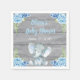 Serviettes de baby shower d'éléphant adorables pour un garçon. Conçu pour s'adapter à nos invitations avec de beaux éléments bleu aquarelle fleuris et un éléphant à la mode sur un arrière - plan rustique en planches de bois.