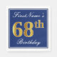 Cette conception simple et élégante de serviette en papier comporte un message comme "68e anniversaire de FirstName" (le "68e" ayant une fausse couleur dorée) dans une zone carré de couleur bleue avec un contour de bordure simple. Le nom est en texte de type script de couleur blanche et peut être personnalisé. Des serviettes comme celles-ci pourraient être utilisées à une fête d'anniversaire pour quelqu'un qui fête son soixante-huitième anniversaire. [~Z0000141]