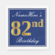 Cette conception simple et élégante de serviette en papier comporte un message comme "NameHere’s 82nd Birthday" (avec le "82nd" ayant une fausse couleur dorée) dans une zone carré de couleur bleue avec un contour de bordure simple. Le nom est en texte de type script de couleur blanche et peut être customisé. Des serviettes comme celles-ci pourraient peut-être être utilisées à une fête d'anniversaire pour quelqu'un qui célèbre son quatre-vingt-deuxième anniversaire. [~Z0000141]