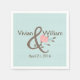 Ajoutez une touche spéciale à votre table désertique mariage, avec ces serviettes en papier pois bleu oeuf de robin. Des graphiques d'un corail et de fleur bleue sur le brun et le symbole, décorent le milieu, avec du texte marron personnalisé autour. Personnalisez le nom de la mariée et du marié et la date du mariage pour votre journée spéciale.