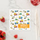 Une serviette motif de véhicules de construction colorée pour correspondre à cette fête d'anniversaire de thème de construction! La serviette est livrée avec un motif construit avec de nombreux éléments de construction comme un camion à benne rouge et jaune mignon transportant les débris, une pelle orange, une chargeuse avant verte poussant la saleté, un mélangeur de béton bleu, des cônes orange et blanc et une barrière de zone de construction jaune et noir. Personnalisez avec un message de fête.