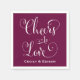 Les serviettes mariages sont dotées d'un design de script de calligraphie "Cheers to Love" avec un texte monogramme blanc personnalisé. Vous pouvez modifier la couleur arrière - plan de la Bourgogne profonde / rouge vin pour la coordonner avec votre jeu de couleurs mariages.