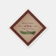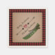 Des serviettes en papier illustrant un coeur rouge entre deux flèches sur l'illustration d'un canot vert. Personnalisez le texte. L'Arrière - plan est rouge et noir plaid. Recherchez les invitations correspondantes et d'autres éléments de coordination chez Jill's Paperie.
