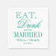 Mangez boire et être marié aqua / bleu turquoise et blanc mariage serviettes. Design élégant de typographie de script pour une soirée de mariage classe. Calligraphie élégante manuscrite associée à des polices formelles chic. Modèle tendance avec des couleurs arrière - plans personnalisables. Joli slogan vintage pour table rustique country chic. Idéal aussi pour les dîners de répétition. Personnalisé avec le nom de la mariée et du marié plus la date du mariage. Belle décoration mariage formelle.