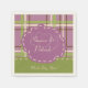 Un arrière - plan plaid aux tons mauve de glycine, vert sauge, beige beige de babeurre et marron café, est décoré d'un panneau d'accent en vert et d'un rose avec des exemples de noms et une date à laquelle vous pouvez customiser pour votre événement spécial. La rose et le panneau avec accents ont tous deux un aspect cousu pour ajouter un peu de charme fait maison au design. Ces serviettes ajoutent une touche douce et jolie à toute réception de mariage ou de répétition sur le thème du jardin de campagne. Cette serviette sera compatible avec n'importe quel autre produit Country Garden Wedding afin que vous puissiez facilement rendre votre événement aussi coordonné que vous le souhaitez.