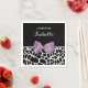 Serviettes en papier peint en girafe noir et blanc mignonnes avec ruban violet lavande ceinturé attaché dans un arc féminin. Personnalisez ce joli design poster de animal en ajoutant le nom de la fille du parti. Image imprimée plate, pas l'arc réel.
