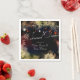 Beau feuilles de feuilles d'aiguille dans les tons rouge & or + lumières festives blanc & rouge à cordes accrochées aux branches d'arbre + arrière - plan noir illustré sur des serviettes en papier de mariage personnalisées. Facile de personnaliser les serviettes de faveur avec votre propre libellé pour votre prochain MARIAGE NATURE INSPIRED | BOHEMIAN STYLE MARIAGE | SOIRÉE MARIAGE JARDIN ou MARIAGE DE LUMIÈRES DE CHAÎNE! (Vous pouvez trouver les essentiels et les faveurs mariages correspondants dans ce magasin, le paradis nuptial. Contactez ujean4791@gmail.com pour un travail personnalisé et/ou la coordination de la papeterie mariage.))