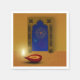 Joyeux Diwali Illustration : diya rouge (une lampe à huile indienne en forme de tasse) devant une fenêtre décorative indienne avec feux d'artifice à l'extérieur.