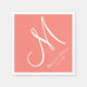 Serviette Jetable Élégant corail rose et blanc Monogramme