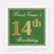 Serviette Jetable Elégant Vert, Faux Or 14ème Anniversaire + Nom