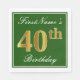 Serviette Jetable Elégant Vert, Faux Or 40ème Anniversaire + Nom