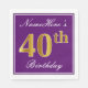 Serviette Jetable Elégant violet, Faux Or 40ème anniversaire + Nom