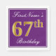 Serviette Jetable Élégant violet, Faux Or 67ème anniversaire + Nom
