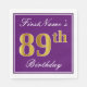 Serviette Jetable Elégant violet, Faux Or 89ème anniversaire + Nom