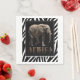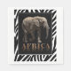 Photo d'un éléphant dans un cadre en zèbre avec le texte "Afrique". Associez ces serviettes avec des plaques de papier avec la même image ou une image similaire.