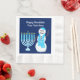 Des serviettes en papier Happy Hanoukka personnalisées sont appropriées pour les fêtes du déjeuner et du dîner. Consultez ma boutique pour trouver des décorations de fête, des assiettes, des coureurs de table et plus encore. Ce bonhomme de neige souriant dans son foulard bleu étoile de David et la Menorah bleue déclenchera votre texte blanc sur les bandes arrière - plans bleu foncé.