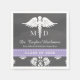Robuste et joli tableau en damas dentelle de l'école médicale de fin d'études avec une serviette en papier avec un caduceus flanqué par les lettres MD dans un style d'illustration de look craie et un imprimé lavande violette et ruban cousu blanc look. Customisez-le avec le nom du diplômé, le nom de l'école de médecine et l'année de classe sur ce médecin, chirurgien et médecin fournitures de l'école de médecine. Oeuvre © Chrissy H. Studios, LLC. Tous droits réservés.