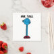 Au début, M. Tall n'aime pas sa taille. Cela l'a empêché de participer à certaines activités avec ses amis Mr Men. Ses amis le convainquent qu'être grand peut avoir ses avantages, alors M. Tall apprécie sa taille. Si vous connaissez quelqu'un qui n'est pas à l'aise d'être grand ce design ferait un grand cadeau. Savoir que M. Tall est finalement devenu à l'aise au sujet de sa hauteur pourrait les aider à partir pour être plus à l'aise.