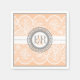 Poche, dentelle blanche motif papier mariage avec initiales, avec un motif avec dentelle peachée et blanche, une bande blanche le long de la serviette et une ligne pointillée sur elle et vos initiales dans un cadre avec des points gris. Il y a une frontière grise autour. Cette serviette en papier girly tendance et mignonne est parfaite pour d'autres occasions spéciales comme des douches nuptiales, fêtes d'anniversaire, baby showers, fiançailles, réception, anniversaires, etc. Vous pouvez personnaliser et ajouter votre message ou votre monogramme.