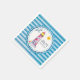 Serviettes en papier à thème nautique. Conçu sur un motif rayé bleu et un cadre nautique circulaire superposé. Un phare rayé rouge et une boule de plage, avec un soleil souriant et une mouette volant au loin. Personnalisez avec vos initiales et votre date mariage.