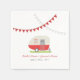 Serviettes en papier illustrant une image d'un camper roux rétro avec un faisceau rouge et jaune. Personnalisez le texte. Recherchez les invitations correspondantes et d'autres éléments de coordination chez Jill's Paperie.
