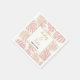 Serviette en papier pour mariage aux feuilles tropicales roses et dorées. Ce dessin exceptionnel représente des feuilles de philodendron à feuilles découpées (Monstera deliciosa) ou plante fromage suisse et feuilles de palmier en rose saumon avec un contour doré. Un cadre blanc avec un contour doré contient votre texte. Choisissez-le pour votre mariage tropical de bord de mer ou de destination.