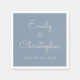 Dusty Blue et blanc personnalisé mariage ou dîner d'accueil serviettes. Le texte des serviettes simples et élégantes bleu poussiéreux peut être mis à jour et customisé avec votre nom et votre date de mariage.