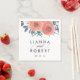 Conçues pour coordonner avec notre collection de faire-part de mariage et accessoires Peach Poppies, ces serviettes à mariage floral moderne personnalisées, dans une palette de couleurs chic de marine et de corail, sont parfaites pour votre cocktail ou réception de mariage. Le design est composé d'un ensemble de fleurs de pavot à l'aquarelle dans la pêche et le corail, entouré de feuilles et de bourgeons en bleu marine poussiéreux et vert chasseur défraîchi. Ajoutez vos noms et votre date de mariage dans des lettres bleues modernes de minuit agrémentées de swashes décoratifs.