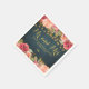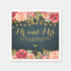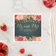 Élégant script de typographie or de luxe M. et Mme mariage serviettes en papier personnalisées avec de belles bordures de bouquets rose de pivoine rouge, rose et rousse sur minuit sombre arrière - plan de tableau bleu marine. Idéal pour votre nuit été ou automne | pays rustique élégant | mariages à thème jardin extérieur, renouvellement de malheur ou anniversaires de relation.