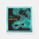 Masquerade quinceañera quinzième anniversaire papier serviette bleu turquoise, faux feuille d'aqua conception personnalisée, avec un masque bleu aqua vénitien avec plumes sur arrière - plan noir avec une bordure de faux feuille d'aqua avec texture émiettée et texte or. Un design modèle parfait pour votre bal mascarade de quinceañera ou la fiesta de quince años, la fiesta de quinceañera, le coing ou encore la fête massoise de sweet sixteen bal masque. Notez qu'il n'y a pas de véritable feuille, masque ou plumes, mais ils sont tous "imprimés sur" des images.