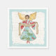 Ces serviettes sont décorées d'un délicat ange de Noël. Elle porte une robe florale bleue, rouge et verte, et ses ailes sont colorées d'un motif doré. Elle tient une bannière avec le message "Paix sur Terre" que vous pouvez personnaliser. L'Arrière - plan est de la musique de feuilles fanées avec une bordure bleue.