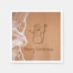 Illustration de Noël ensoleillée avec un bonhomme de neige et Joyeux Noël écrit dans le sable sur la plage à côté de l'océan.