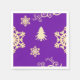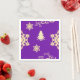Un décor de Noël coloré, avec des flocons de neige, des arbres de Noël et des tourbillons éparpillés sur un arrière - plan violet festif.