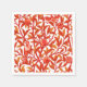 Serviettes en papier dans une tapisserie de William Morris Art Nouveau motif d'oiseaux exotiques dans un grenadier, avec des feuilles de mandarine profonde et d'orange corail, des oiseaux et des fruits en orange et blanc, et un arrière - plan blanc crémeux