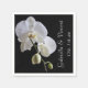 La jolie Orchidée blanche sur papier Mariage noir serviettes ajoutera une touche élégante à votre douche nuptiale ou réception de mariage. Ces élégantes serviettes jetables de mariage botanique personnalisées présentent une photographie florale de fleurs d'orchidées phalaenopsis blanches sur la tige avec un arrière - plan noir.
