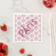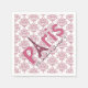 Paris thème Sweet 16 anniversaire serviettes en papier de fête, avec des graphiques d'un arrière - plan damassé rose et blanc et texte graphique rose lisant Paris, avec la lettre a fait comme la Tour Eiffel. Personnalisez le texte du script noir pour la journée spéciale de votre fille. Produits correspondants disponibles.
