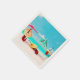 Trois piments rouges sur la plage. Chaud jour ensoleillé, mer bleue, sable blanc, parasols et sombreros. Deux poivrons sont noyés sous les parasols de plage, le troisième est lavé au fond de l'eau. Chaque heure est une happy hour à la plage. Soleil, mer, sable, Sombrero. Carré format produits et cadeaux