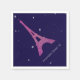 Paris thème Sweet 16 anniversaire serviettes en papier de fête, avec des graphiques d'une étoile violette remplie arrière - plan et de parties scintillant rose en apparence des graphiques de la Tour Eiffel. Personnalisez le texte blanc pour la journée spéciale de votre fille. Produits correspondants disponibles.