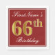 Serviette Jetable Rouge élégant, Faux Gold 66e anniversaire + Nom pe