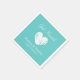 Serviettes de mariage bleu turquoise et blanc. Design élégant avec coeur d'amour rustique et modèle de typographie de script élégant. Ajoutez les noms de la mariée et du marié plus la date du mariage. Thème tendance, partie du jeu de collection assorti aux couleurs coordonnées. Belles décorations de lieux, accessoires et fournitures de fête pour couple marié.