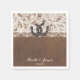 Serviettes de mariage de campagne avec des fers à cheval rustiques et de la dentelle. Personnalisez avec n'importe quel texte. Articles assortis disponibles.