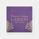 Une élégante serviette de réception de mariage violet et or. Ces serviettes font partie d'un ensemble de faire-part de mariage.