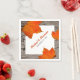 Bois rustique et feuille, serviettes mariages de automne en papier. Feuilles d'érable rouge / orange, cadre d'écorce d'arbre à personnaliser avec les noms de la mariée et du marié et leur date de mariage.