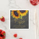 Script de typographie or rustique M. et Mme mariage serviettes en papier personnalisées avec un beau bouquet de tournesol sur arrière - plan de tableau noir gris foncé. Idéal pour votre nuit été ou automne | élégant pays rustique | jardin de plein air mariages à thème, malheur renouvellement ou anniversaires.