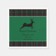 Motif tartan noir, vert et rouge avec orchestre vert festif et silhouette de rennes sur les serviettes de cocktail de Noël.