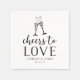Faites de votre heure de cocktail un moment spécial grâce à nos serviettes mariages personnalisées avec une paire de flûtes de champagne jointes par un coeur effervescent. "Cheers to love" apparaît sous le script de calligraphie noire et la typographie de bloc vintage. Customisez ces serviettes blanches et noires fantaisistes mais élégantes avec vos noms et date mariage.