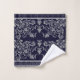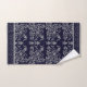 Belle serviette dressée dans un arrière - plan bleu marine aux fleurs douces gris. Idéal pour faire un don, des bains invités et plus encore.
