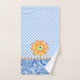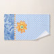 Une serviette de toilette pour égayer n'importe quel bain. Le grand motif blanc à pois bleu ciel en fait une serviette amusante pour un bain pour enfants ou pour adultes. Le tournesol jaune perché est complété par une ligne d'accent orange et une bordure bleu marine marbrée lui donne un peu de pizza moderne.