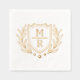 Conception florale rétro de serviettes estampillées en feuille avec bouclier et monogrammes. serviette mariage avec deux monogrammes, un bouclier et une couronne.