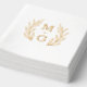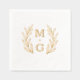 Conception florale rétro de serviettes empilées Foil avec monogrammes. serviette mariage avec deux monogrammes et couronne.
